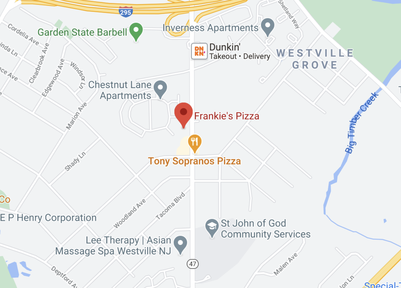 Welcome to Frankie's Pizzeria, proudly serving Westville Grove and surrounding areas! We specialize in ONLY THE BEST Pizza, Strombolis, Wraps, Pasta Dinners, Salads, Steaks, Hoagies, Wings, Seafood Platters, Paninis & Much More! Give us a call today to place your order. We have something for everyone in your family!